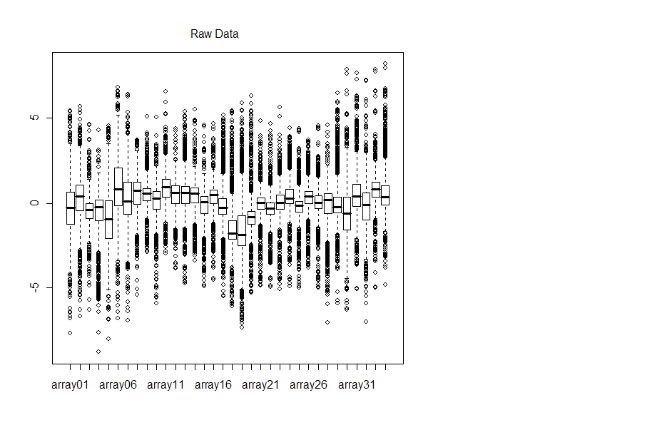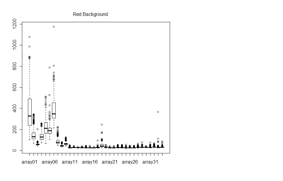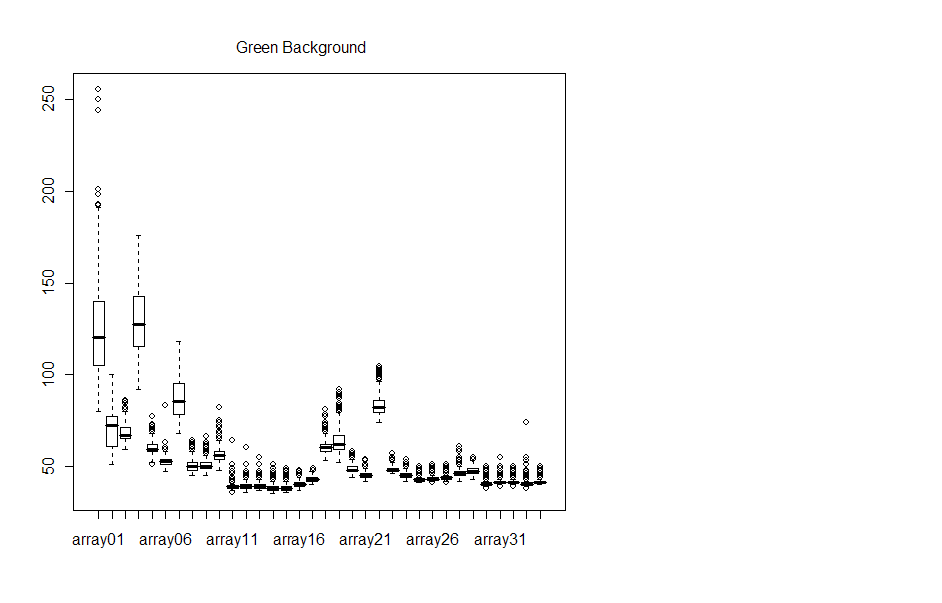 Boxplots of the background confirm what we saw visually with the microarray chip - the background data is very noisy.